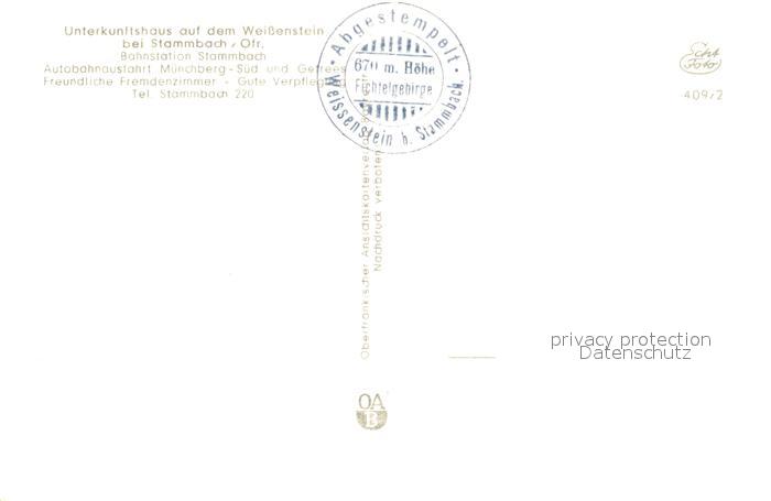 73652807 Stammbach Unterkunftshaus auf dem Weissenstein postalisch nicht gelaufen Erhaltung siehe scans [FriedD77] KatCode: 11110009475175