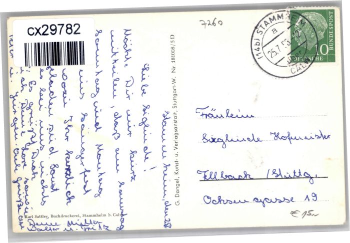 30923972 alte Postkarte Stammheim Calw Erholungsheim Friedensheim postalisch gelaufen KatCode: 11110008235085