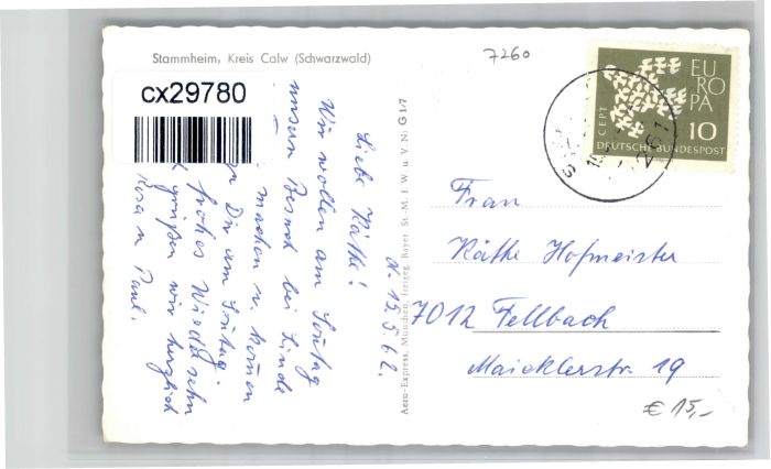30923974 alte Postkarte Stammheim Calw Fliegeraufnahme postalisch gelaufen KatCode: 11110008235085