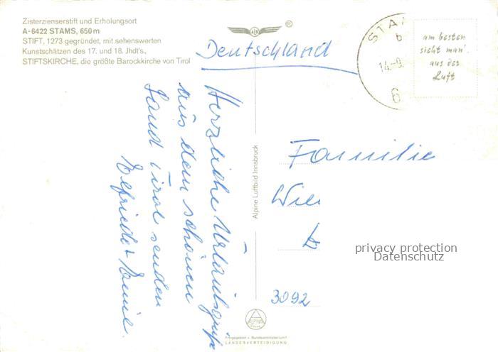 74110381 alte Postkarte Stams Tirol AT Fliegeraufnahme mit Maria Locherboden und Mieminger Kette postalisch gelaufen Erhaltung siehe scans [WerneD78] KatCode: 11390334070221