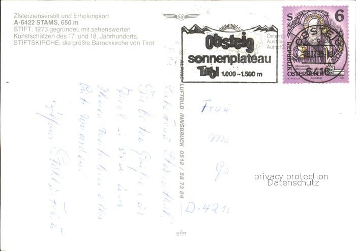 72296482 alte Postkarte Stams Zisterzienserstift 13. Jhdt. Stiftskirche Barock Erholungsort Fliegeraufnahme postalisch gelaufen Erhaltung siehe scans KatCode: 11390334070221