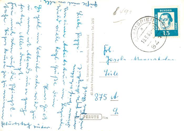 73893576 alte Postkarte Stamsried Brunnen Kirche Ortspartien postalisch gelaufen Erhaltung siehe scans [WerneD78] KatCode: 11110009372161