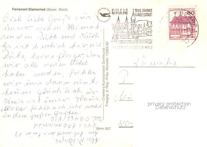 73580692 alte Postkarte Stamsried Fliegeraufnahme postalisch gelaufen Erhaltung siehe scans [KathaD81] KatCode: 11110009372161