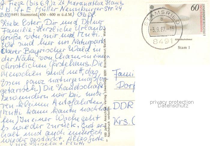 73735272 alte Postkarte Stamsried Ortsansicht mit Kirche Brunnen Naturpark Vorderer Bayerischer Wald postalisch gelaufen Erhaltung siehe scans [FriedD77] KatCode: 11110009372161