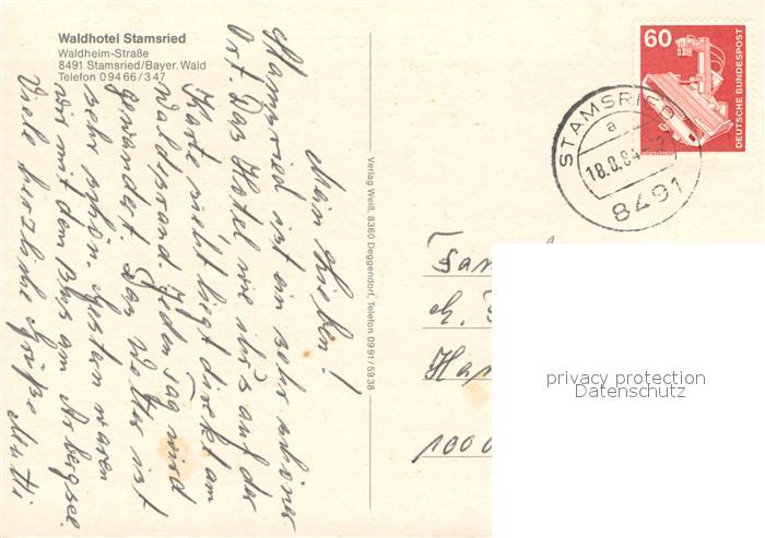73731350 alte Postkarte Stamsried Waldhotel Stamsried Restaurant Hallenbad Bayerischer Wald postalisch gelaufen Erhaltung siehe scans [FriedD77] KatCode: 11110009372161