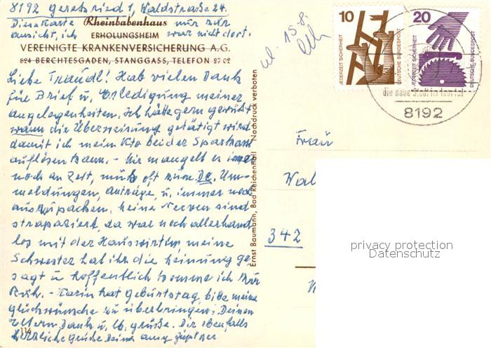 73615282 alte Postkarte Stanggass Berchtesgaden Rheinbabenhaus Erholungsheim postalisch gelaufen Erhaltung siehe scans [WerneD78] KatCode: 11110009172117