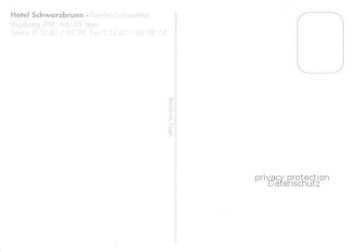 73319443 Stans Tirol Hotel Schwarzbrunn postalisch nicht gelaufen Erhaltung siehe scans [FriedD77] KatCode: 11390335070928