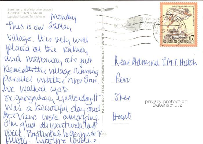 71860341 alte Postkarte Stans Tirol Langlauf-Loipe Tennishalle Fliegeraufnahme postalisch gelaufen Erhaltung siehe scans KatCode: 11390335070928