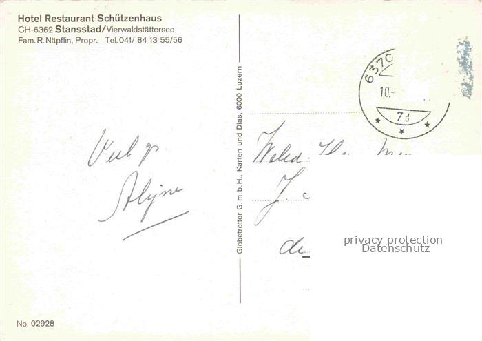 34143177 alte Postkarte Stansstad Nidwalden NW Hotel Restaurant Schuetzenhaus Garten postalisch gelaufen Erhaltung siehe scans [FriedD77] KatCode: 11470140435272
