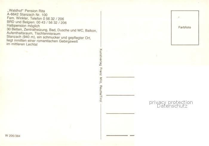 73480364 Stanzach Tirol Waldhof Pension Rita Winter postalisch nicht gelaufen Erhaltung siehe scans [KathaD81] KatCode: 11390331070830