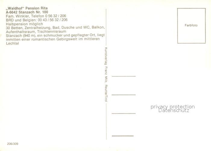 73492572 Stanzach Tirol Waldhof Pension Rita postalisch nicht gelaufen Erhaltung siehe scans [WerneD78] KatCode: 11390331070830