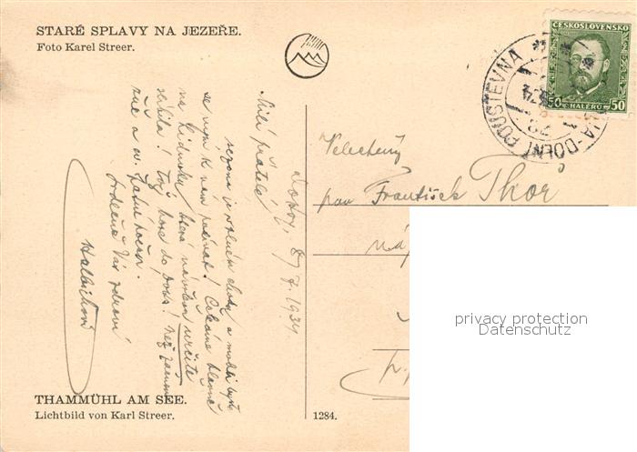 old postcard Stare Splavy Thammuehl Panorama postalisch gelaufen Erhaltung siehe scans [FriedD77]