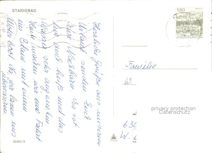 old postcard Starigrad Hotel Hafen postalisch gelaufen Erhaltung siehe scans