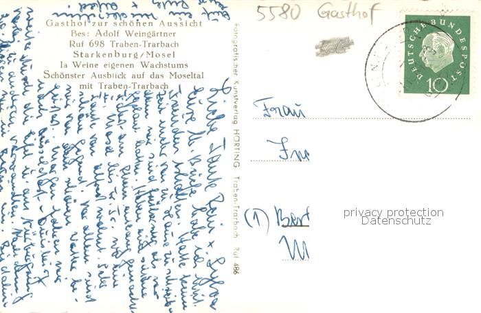 73695747 alte Postkarte Starkenburg Gasthof zur schoenen Aussicht Mosel postalisch gelaufen Erhaltung siehe scans [LiesaD40] KatCode: 11110007231120