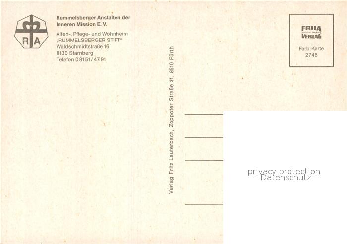 73128372 Starnberg Alten- Pflege- und Wohnheim Rummelsberger Stift postalisch nicht gelaufen Erhaltung siehe scans [PaolaD17] KatCode: 11110009188139