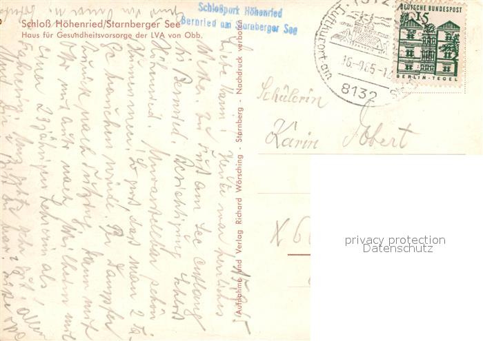 72950794 alte Postkarte Starnberg Schloss Hoehenried postalisch gelaufen Erhaltung siehe scans [WerneD78] KatCode: 11110009188139