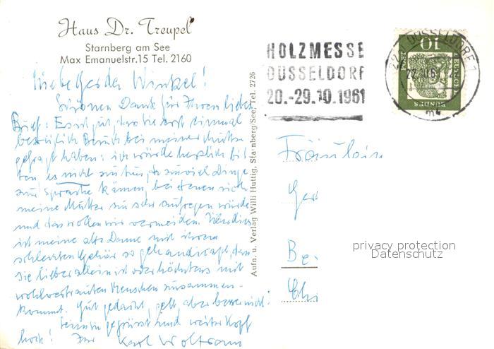73651042 Starnberg Starnbergersee Bayern Haus Dr. Treupel postalisch gelaufen Erhaltung siehe scans [FriedD77] alte Postkarte Frie Katcode 11110009188139