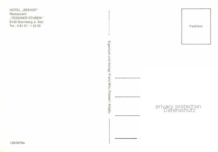 72755605 Starnberg Starnbergersee Bayern Hotel Seehof Restaurant Tessiner Stuben postalisch nicht gelaufen Erhaltung siehe scans [WerneD78] KatCode: 11110009188139