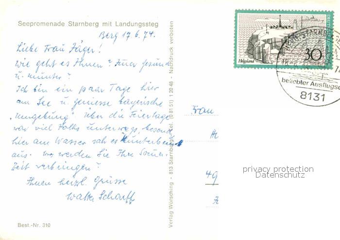 72791956 alte Postkarte Starnberg Starnbergersee Bayern Seepromenade Landungssteg postalisch gelaufen Erhaltung siehe scans [NatalD47] KatCode: 11110009188139