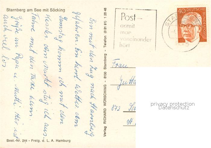 73786115 Starnberg Starnbergersee Fliegeraufnahme mit Soecking postalisch gelaufen Erhaltung siehe scans [FriedD77] alte Postkarte Frie Katcode 11110009188139