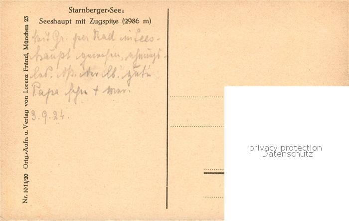 73555430 Starnbergersee Seeshaupt Zugspitze postalisch nicht gelaufen Erhaltung siehe scans [PaolaD17] KatCode: 11110009188139
