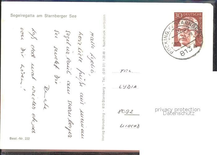 72133858 alte Postkarte Starnbergersee Segelregatta Alpenpanorama postalisch gelaufen Erhaltung siehe scans KatCode: 11110009188139
