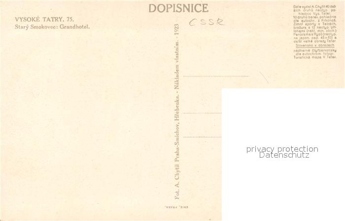 Stary Smokovec Hohe Tatra Grandhotel postalisch nicht gelaufen Erhaltung siehe scans [FriedD77]