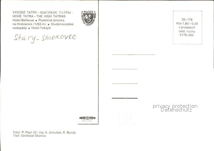 Stary Smokovec Hohe Tatra Hotel Bellevue postalisch nicht gelaufen Erhaltung siehe scans
