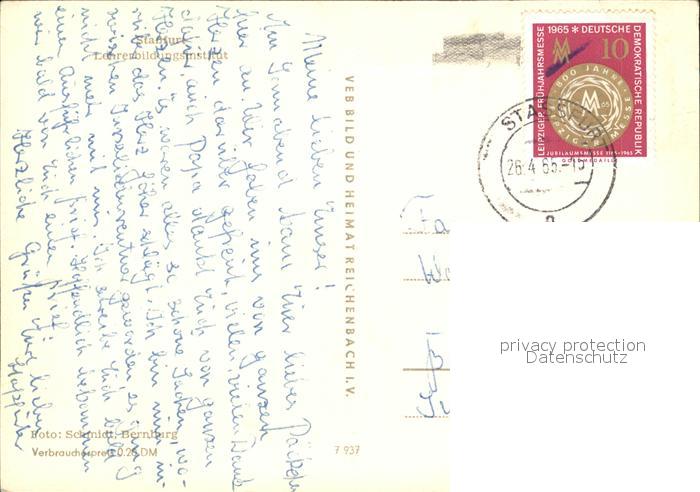 72596577 alte Postkarte Stassfurt Lehrerbildungsinstitut postalisch gelaufen Erhaltung siehe scans [FriedD77] KatCode: 11110015089310