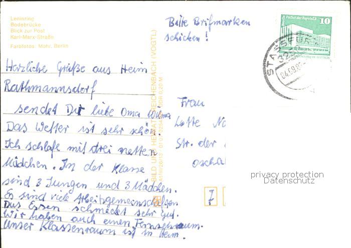 72375664 alte Postkarte Stassfurt Leninring Bodebruecke Post Karl Marx Strasse postalisch gelaufen Erhaltung siehe scans KatCode: 11110015089310