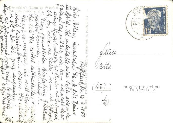 72084000 alte Postkarte Stassfurt Turm St Johanniskirche postalisch gelaufen Erhaltung siehe scans KatCode: 11110015089310