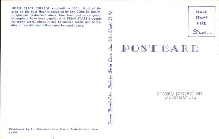 72293165 State College Hotel postalisch nicht gelaufen Erhaltung siehe scans KatCode: 14140410000000
