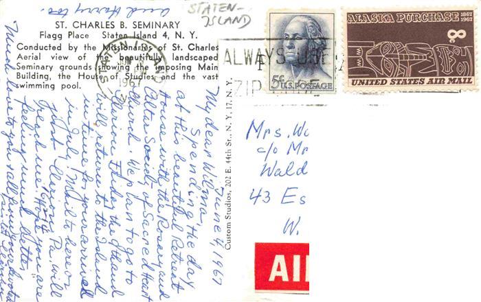 73972880 old postcard Staten Island New York USA St. Charles B. Seminary Flagg Place aerial view postalisch gelaufen Fliegeraufnahme Erhaltung siehe scans [FriedD77] KatCode: 14140340000000