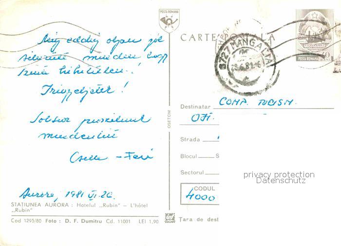 old postcard Statiunea Aurora Hotelul Rubin postalisch gelaufen Erhaltung siehe scans [WerneD78]