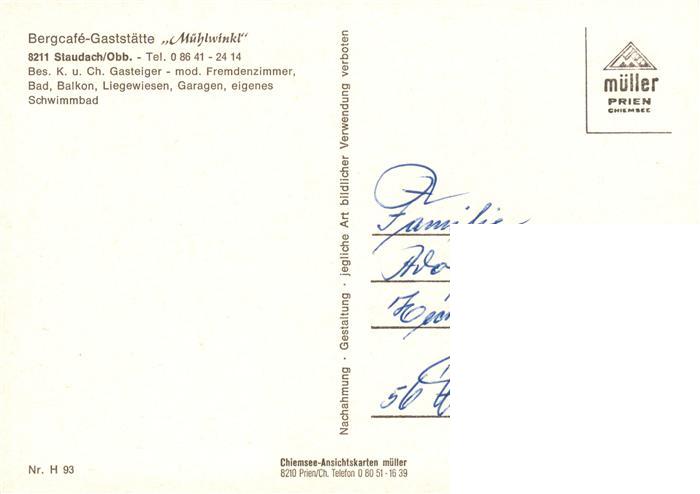 73896667 Staudach Oberbayern Bergcafe Gaststaette Muehlwinkl Terrasse postalisch nicht gelaufen Erhaltung siehe scans [WerneD78] KatCode: 11110009189146