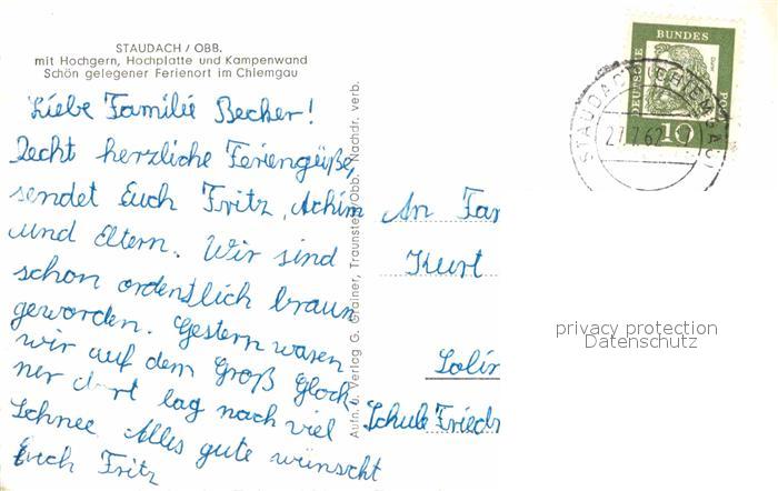 72759566 alte Postkarte Staudach Oberbayern Fliegeraufnahme mit Hochgern Hochplatte Kampenwand Chiemgau postalisch gelaufen Erhaltung siehe scans [LiesaD40] KatCode: 11110009189146