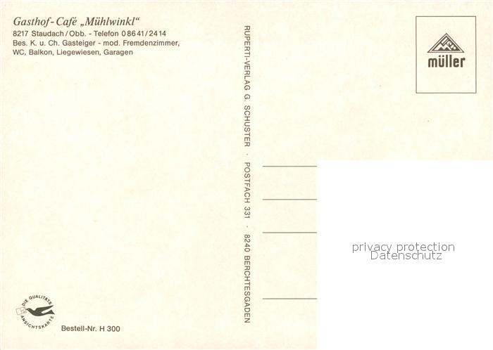 73259911 Staudach Oberbayern Gasthof Muehlwinkl postalisch nicht gelaufen Erhaltung siehe scans [NatalD47] KatCode: 11110009189146
