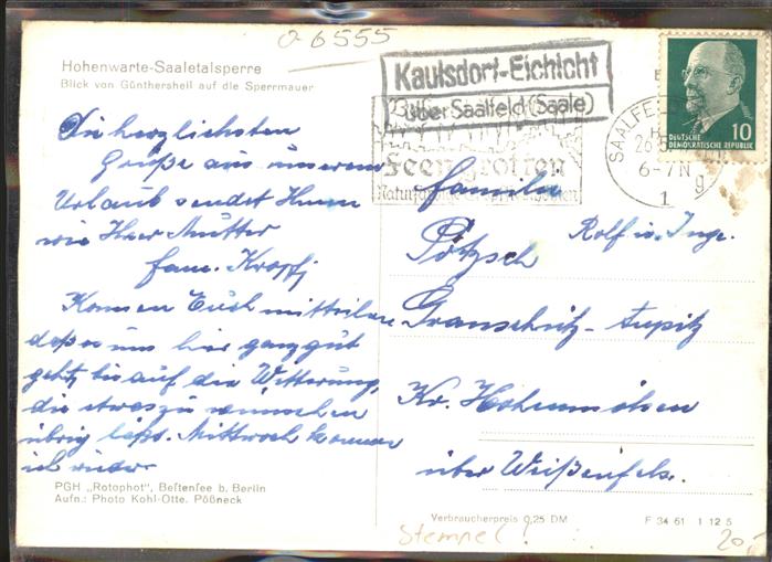11448100 Staudamm Pumpspeicherkraftwerk Hohenwarte-Saaletalsperre Sperrmauer KatCode 22140000001400