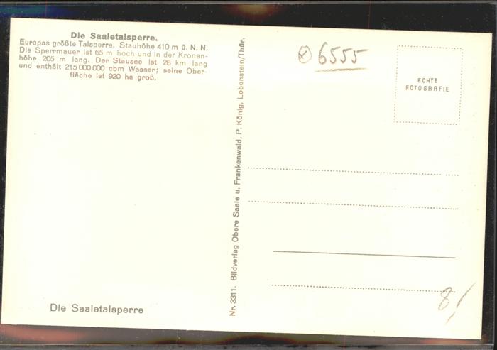 11448090 Staudamm Pumpspeicherkraftwerk Saaletalsperre KatCode 22140000001400