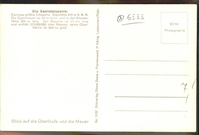 11448089 Staudamm Pumpspeicherkraftwerk Saaletalsperre Überläufe Mauer KatCode 22140000001400