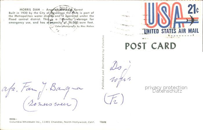 alte Postkarte Staudamm Talsperre Morris Dam Angeles National Forest postalisch gelaufen Erhaltung siehe scans