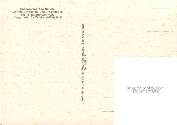 73641753 Staudernheim Christliches Erholungs- und Freizeitheim Rosenschoesschen Nahetal postalisch nicht gelaufen Erhaltung siehe scans [FriedD77] KatCode: 11110007133102