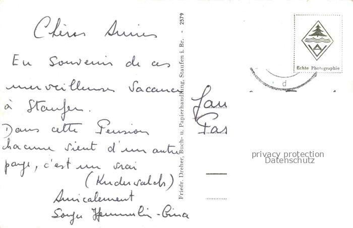 74084378 alte Postkarte Staufen Breisgau Blick durch die Weinberge zur Burg postalisch gelaufen Erhaltung siehe scans [FriedD77] KatCode: 11110008315108