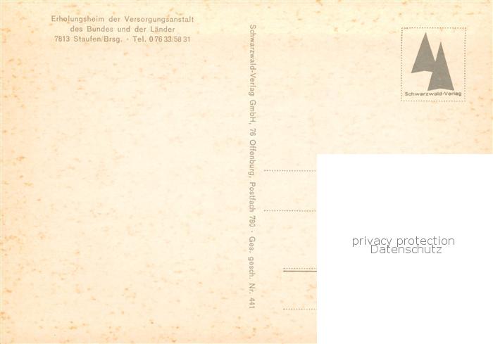 73791768 Staufen Breisgau Erholungsheim der Versorgungsanstalt des Bundes und der Laender postalisch nicht gelaufen Erhaltung siehe scans [WerneD78] KatCode: 11110008315108