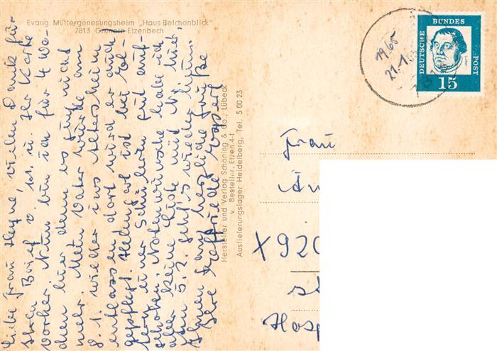 73934940 alte Postkarte Staufen Breisgau Ev Muettergenesungsheim Haus Belchenblick postalisch gelaufen Erhaltung siehe scans [WerneD78] KatCode: 11110008315108