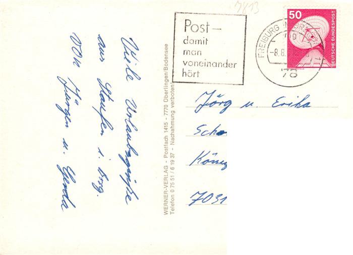 73934858 alte Postkarte Staufen Breisgau Fliegeraufnahme Rathaus Schlossberg Hauptstrasse Stadtsee postalisch gelaufen Erhaltung siehe scans [WerneD78] KatCode: 11110008315108