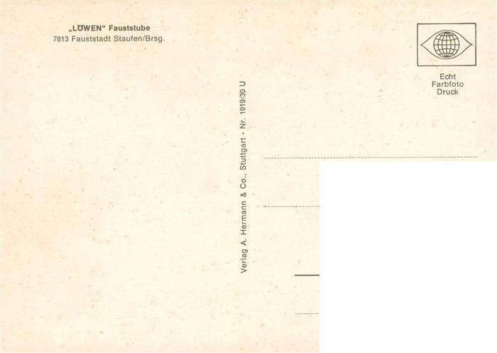73934929 Staufen Breisgau Gasthaus Loewen Staufenstube Burgblick postalisch nicht gelaufen Erhaltung siehe scans [WerneD78] KatCode: 11110008315108