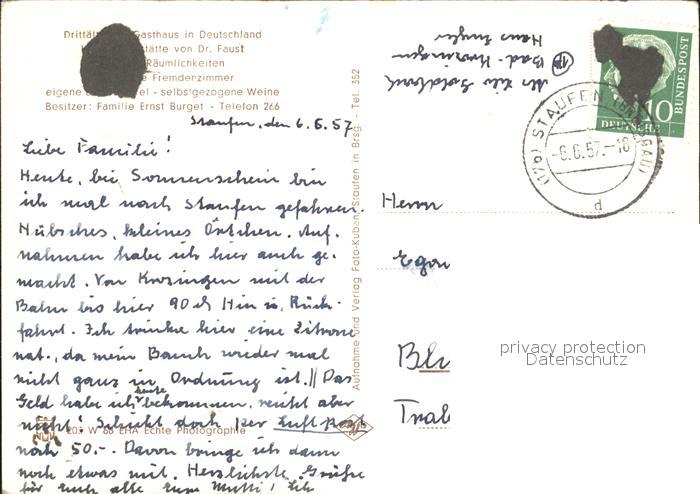 72121835 alte Postkarte Staufen Breisgau Gasthaus Loewen postalisch gelaufen Erhaltung siehe scans KatCode: 11110008315108