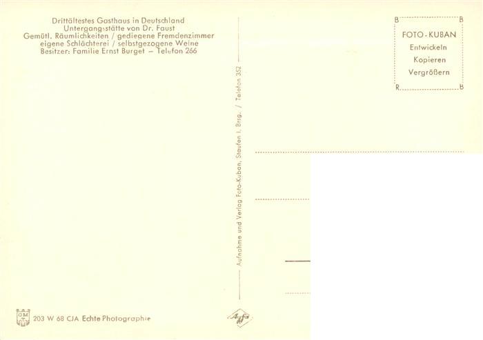 73878523 Staufen Breisgau Gasthaus zum Loewen Gastraum Historische Fauststaette postalisch nicht gelaufen Erhaltung siehe scans [FriedD77] KatCode: 11110008315108