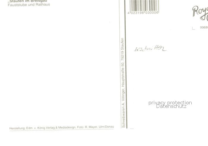 73231560 Staufen Breisgau Gasthaus zum Loewen Rathaus postalisch nicht gelaufen Erhaltung siehe scans [NatalD47] KatCode: 11110008315108